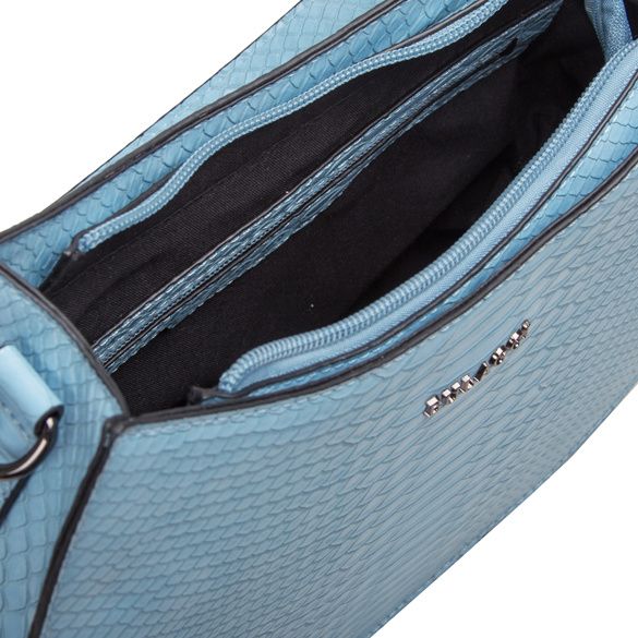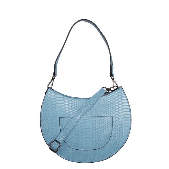 This casual pastel blue schoudertas Clair, is a beautiful addition to your wardrobe. The round shape gives this bag its unique shape. This cross body bag has an adjustable shoulder strap, so that you can wear this bag at your perfect height. The bag has a spacious main compartment and two relatively small inner pockets, of which one with a zipper. On the backside an additional slip pocket can be found. The bag can be closed with a zipper.