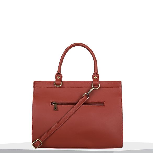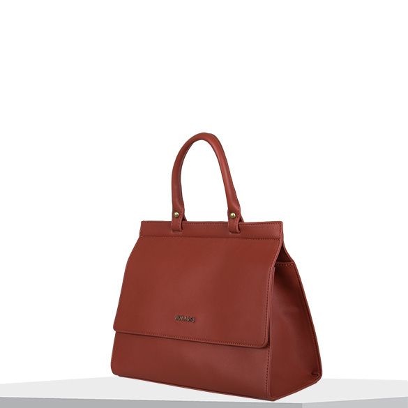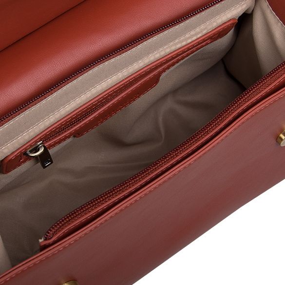 This handbag Cynthia, is both chic and casual and therefore can easily be combined with different outfits. The handbag in the colour burnt orange is beautiful in its simplicity. This handbag has one strap and wears comfortably in the hand. Thanks to the additional shoulder strap, this bag can be worn over the shoulder too.The bag has a spacious main compartment and two relatively small inner pockets, of which one with a zipper. There is also a zip pocket on the back side of the bag. The bag itself also closes with a zipper. The colour of the hardware is called 'antique brush' and has a messing colour, like polished gold.