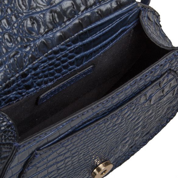 This casual chic dark blue crossbody bag Lotus, is a great addition to your wardrobe this fall and winter season. The all-over croco print gives this bag its unique character. The shoulderstrap is a cord that can be adjusted so that you can determine the perfect height for the bag. On the interior, this bag has one main compartment with one slip pocket. The bag closes with a flap and a magnetic snap closure. The colour of the hardware of this bag is light gold.