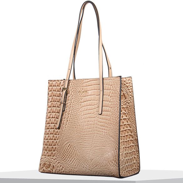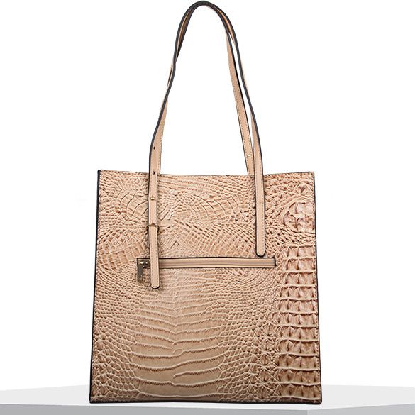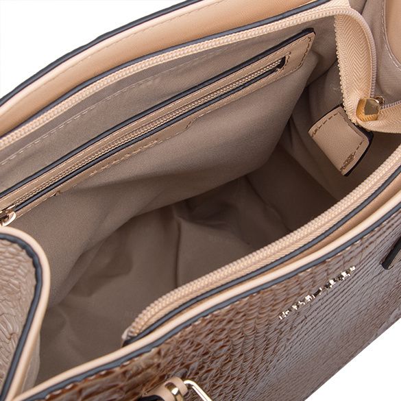 This posh camel shopping bag Lotus, is a beautiful addition to your wardrobe. The all-over croco print gives this spacious shopping bag its unique character. This shopping bag has double (adjustable) straps which can be worn comfortably over the shoulder. This bag has a spacious main compartment and three inner pockets for smaller items. One of them contains a zipper. There is also a zip pocket on the back side of the bag. The bag itself also closes with a zipper. The colour of the hardware of this bag is light gold.